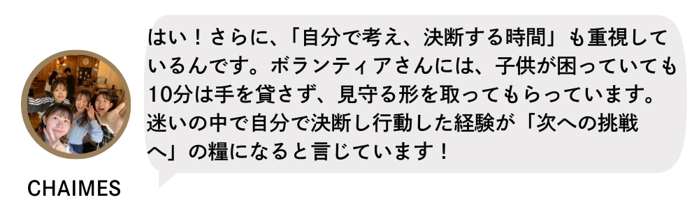 CHAIMESの静かでまっすぐな情熱は、今日も子どもたちのなかに、新たな勇気の芽を育て続けている。