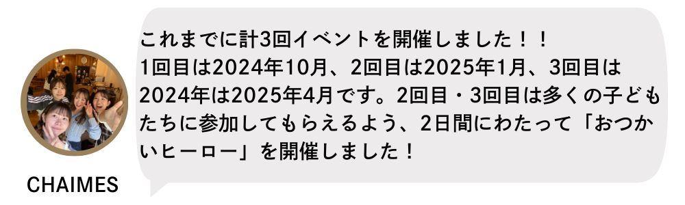 ――― 子供たちにとっても成長につながる、楽しい経験になりそうですね!これまでに何回程イベント開催をしているのですか?