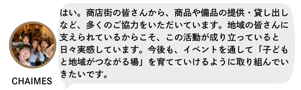 ―――リアルなお買い物の体験ができる上に安全面まで整備されているとは、すごいですね!商店街での開催とのことで、地域の協力もやはり大きいのですか?